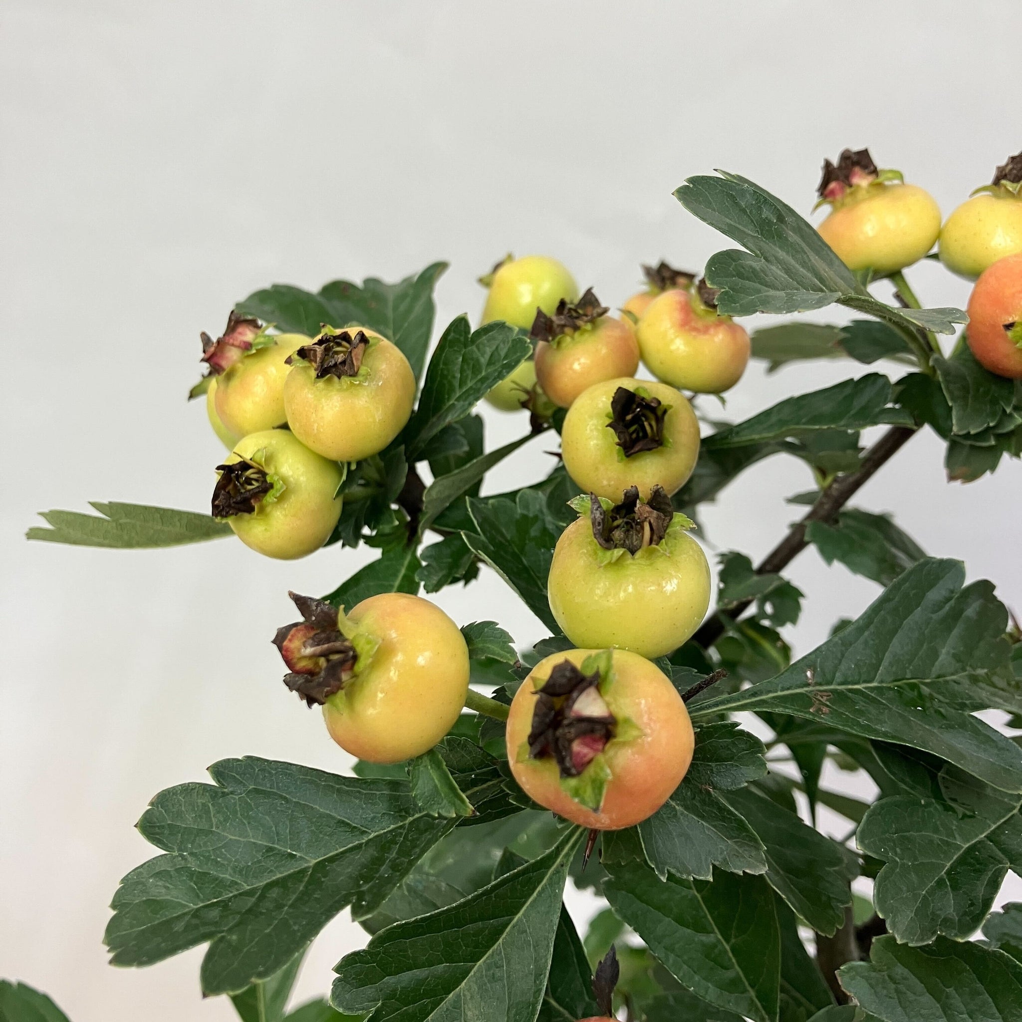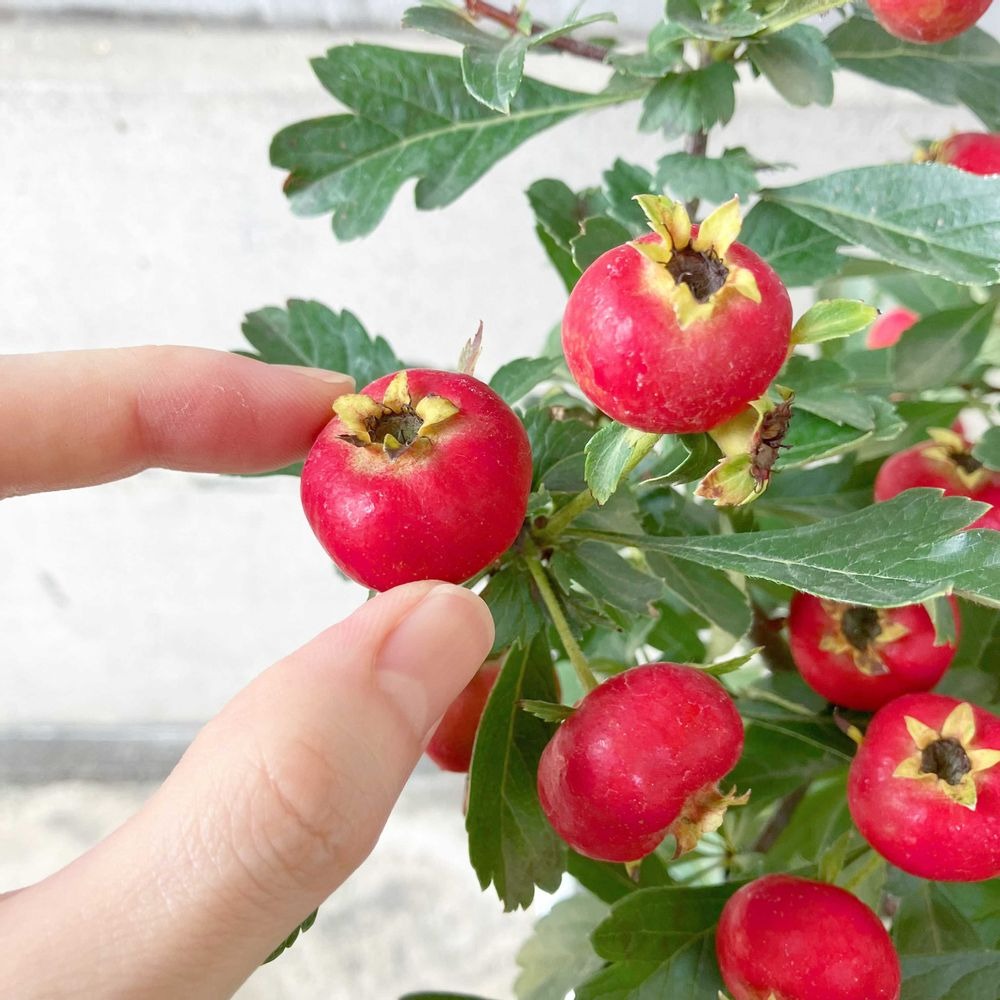 ✂️剪定・お手入れ | 冬の落葉期に不要枝(枯れ枝、込み合う枝)を間引く。実を多くつけたい場合は枝の更新を心がける。果実はそのままでは酸味が強いため、砂糖漬けやジャム、漢方茶(サンザシ茶)などに加工される。消化を助ける効果があるとされる。 |