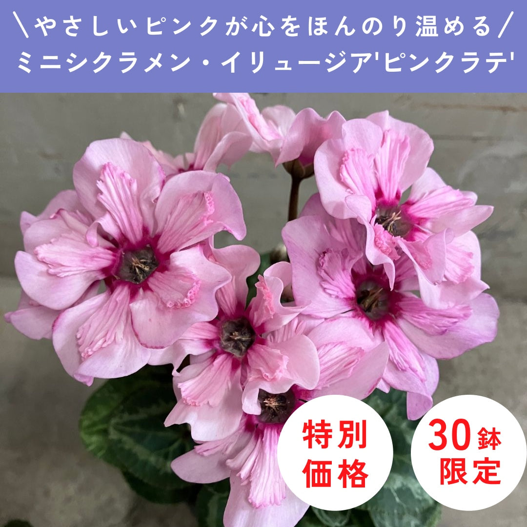 「ミニシクラメン・イリュージア'ピンクラテ' 」は、やさしいピンクと白のグラデーションが魅力のミニシクラメンです。