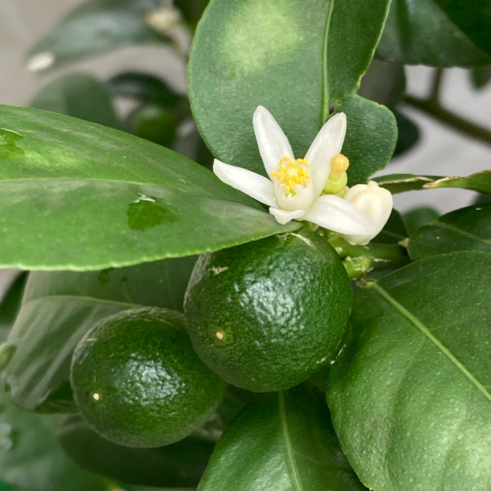 春先に黄色に輝く丸い実をつける金柑(キンカン)。柑橘系では最も育てやすいと言われ、ガーデニング初心者の方にもおすすめな果樹です。花は四季咲きで、白くかわいい花を5,8,10月頃に咲かせます。