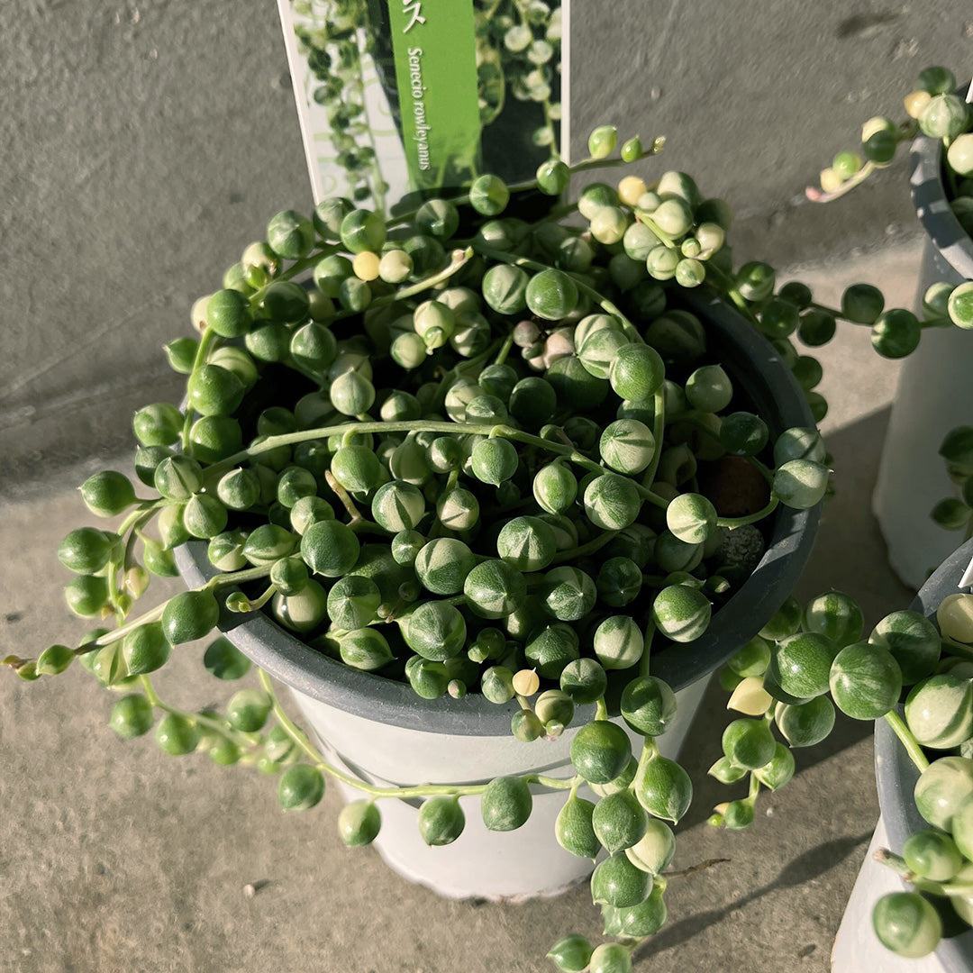 ころんとした丸い粒が、まるで小さな宝石のような人気多肉植物「グリーンネックレス」。